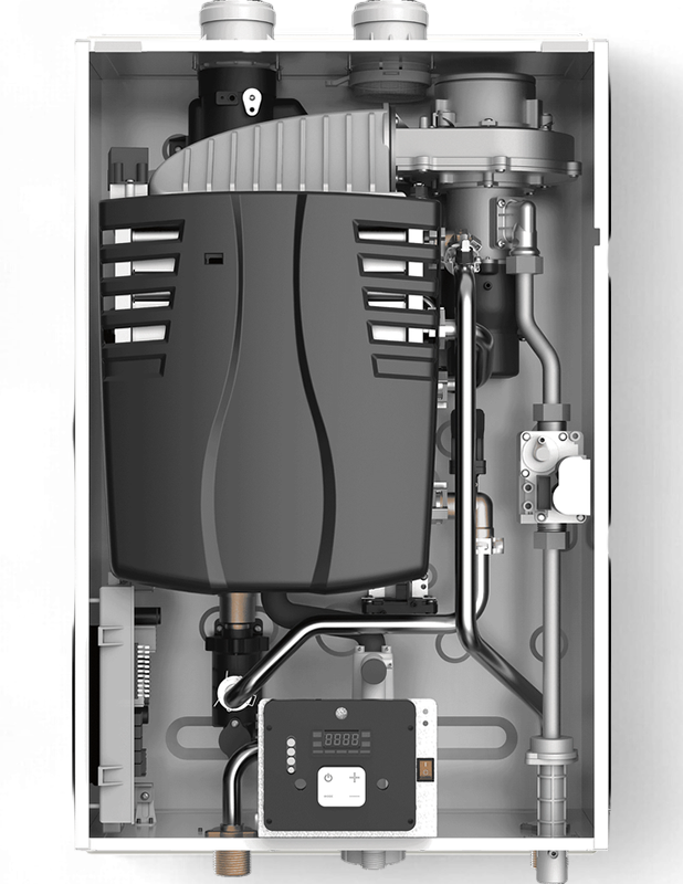 Встроенный конденсационный теплообменник из нержавеющей стали.